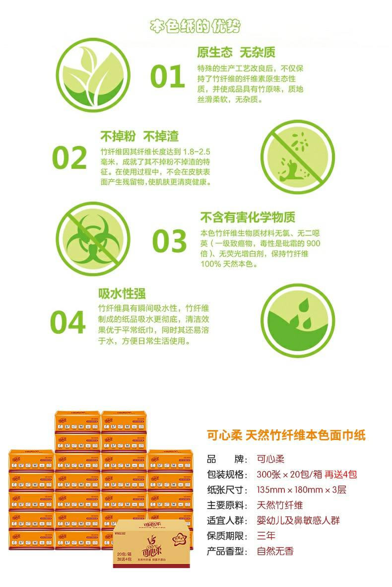 可心柔 V5系列CoRou云柔系列白色木浆60抽