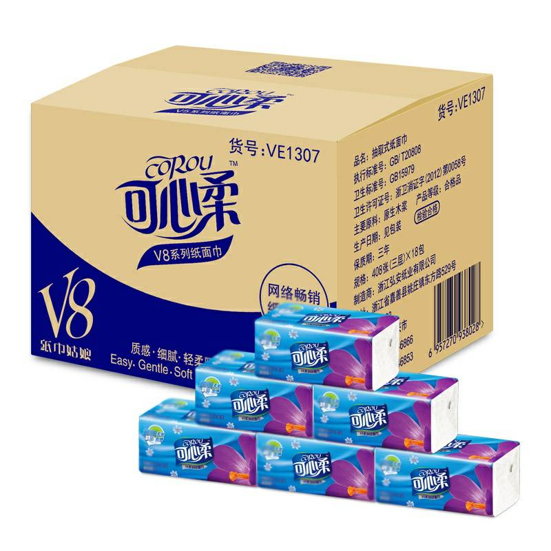 可心柔 V8系列CoRou云柔系列白色木浆60抽